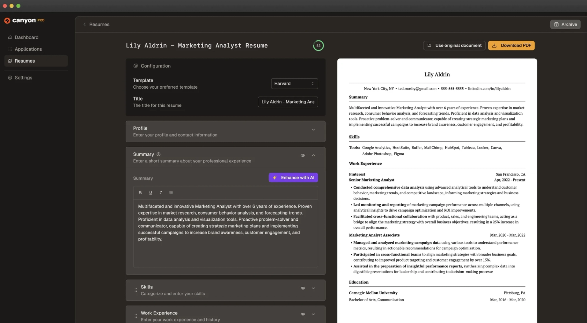 Join Canyon today to start creating your perfect ATS compatible PDF Resume!
